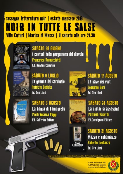 Sabato 6 luglio, a Marina di Massa, alle h 21 presenterò “La gemma del cardinale de Medici” edito da Tea Libri, nell’ambito della manifestazione “Noir in tutte le salse”, tradizionale incontro con noti scrittori di noir, gialli e thriller. L’incontro si terrà alle ore 21.30 presso Villa Cuturi a Marina di Massa in Lungomare e sarà condotto da Alessandra Cenci Campani che ha già presentato e condotto la scorsa edizione della rassegna.